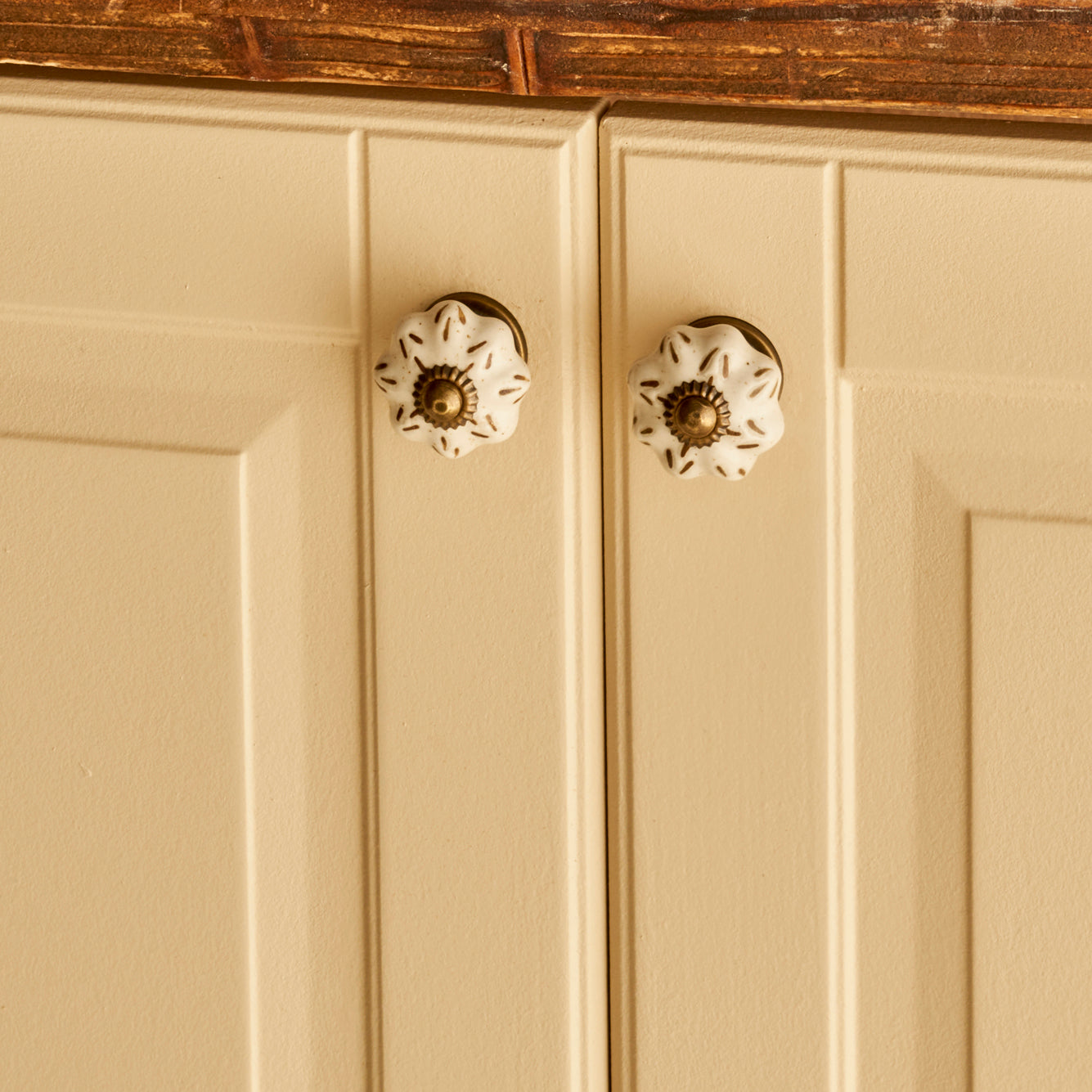 The Alora Cabinet Knob Set of 2 is made from ceramic and fully handcrafted, giving each piece unique color variations. Perfect for adding an artisanal, elegant touch to cabinets, drawers, or furniture.
