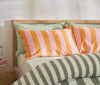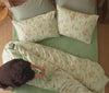 Machine wash cold on a gentle cycle. Tumble dry low. Avoid bleach. Iron on low if desired — though the sateen finish resists wrinkles naturally.