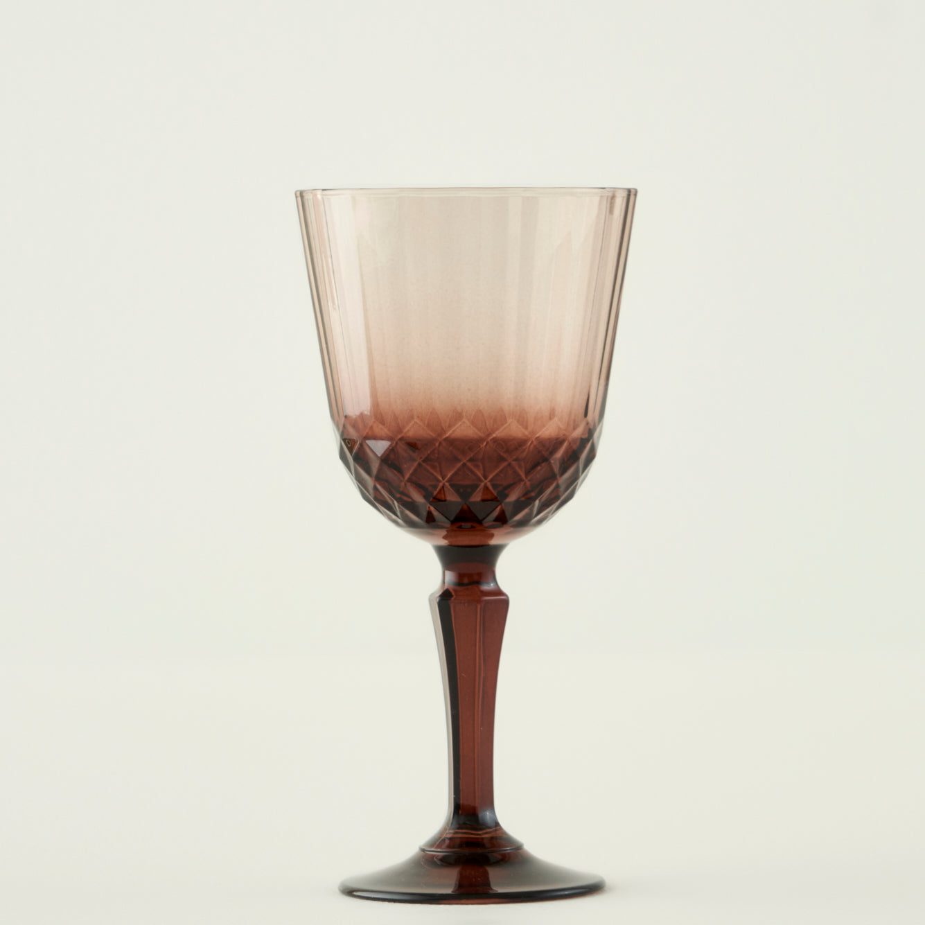 Stylish cut-glass wine goblet available in four elegant transparent colors: anthracite, blue, green, and brown. Adds character and charm to any table setting.