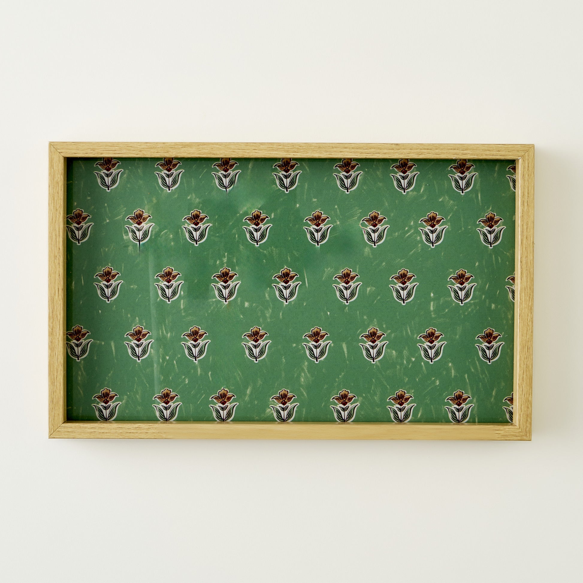 Featuring a sturdy MDF frame with a glass top, this tray brings the rich patterns and warm tones of Indian artistry into your home, adding a touch of cultural elegance.
