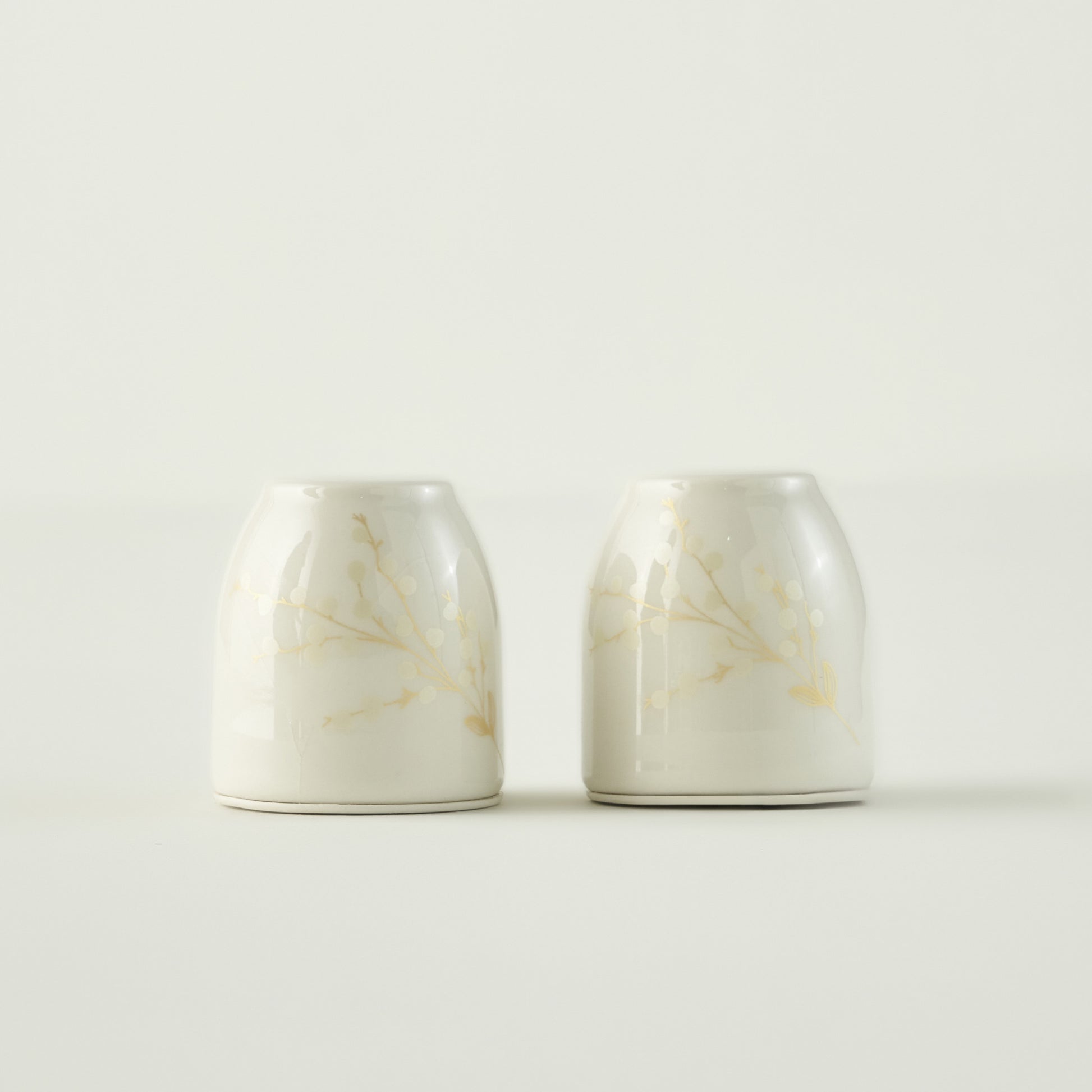 The Exclusive Selection Salt and Pepper Shaker is crafted from porcelain and finished with a refined gold decal print, adding timeless elegance and sophistication to your table.