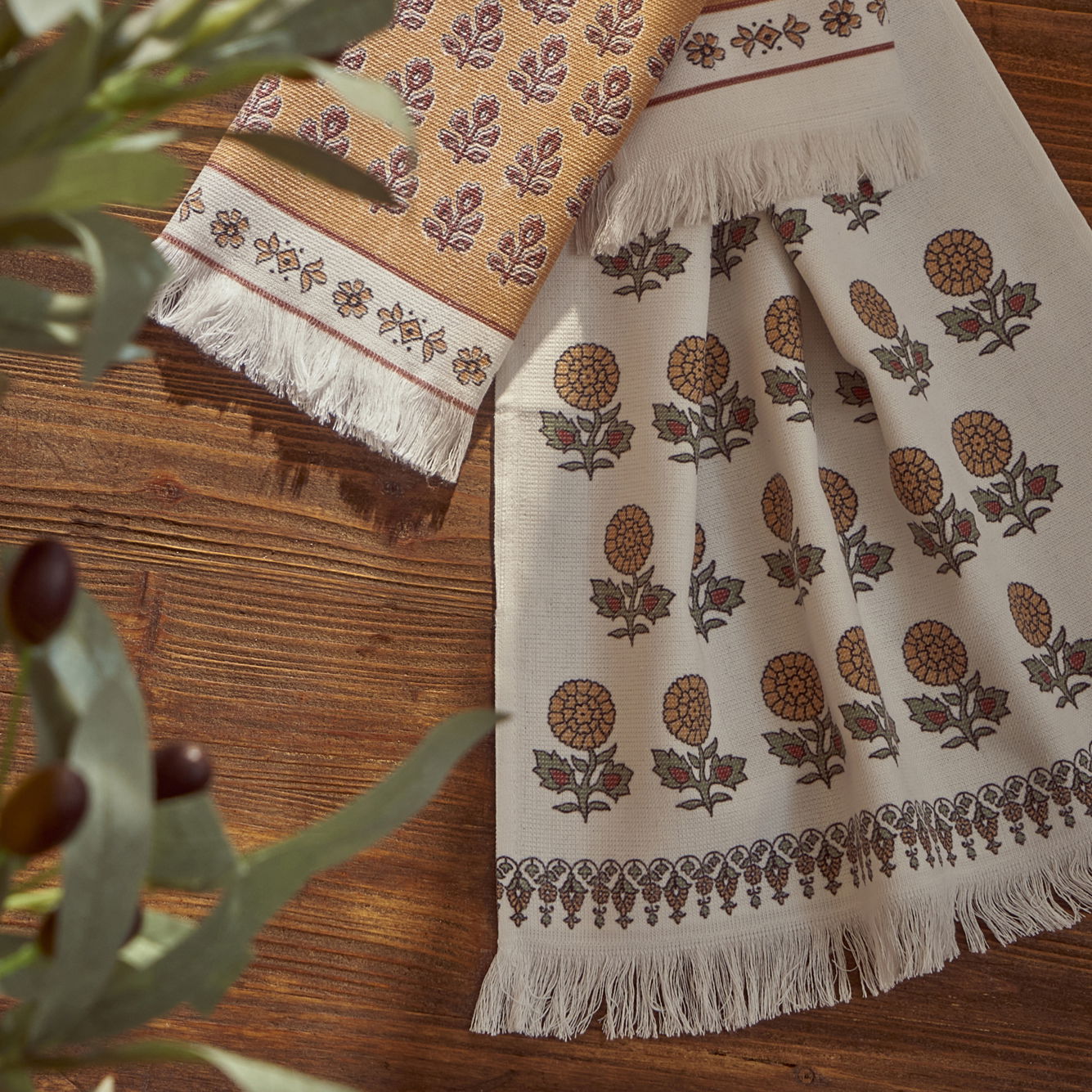 The Indian Dish Towel Set of 2 blends exotic mandala patterns and earthy masala tones, bringing the warmth of India’s cultural heritage to your kitchen. With a single terry towel side and a colorful printed design, it offers both style and functionality.