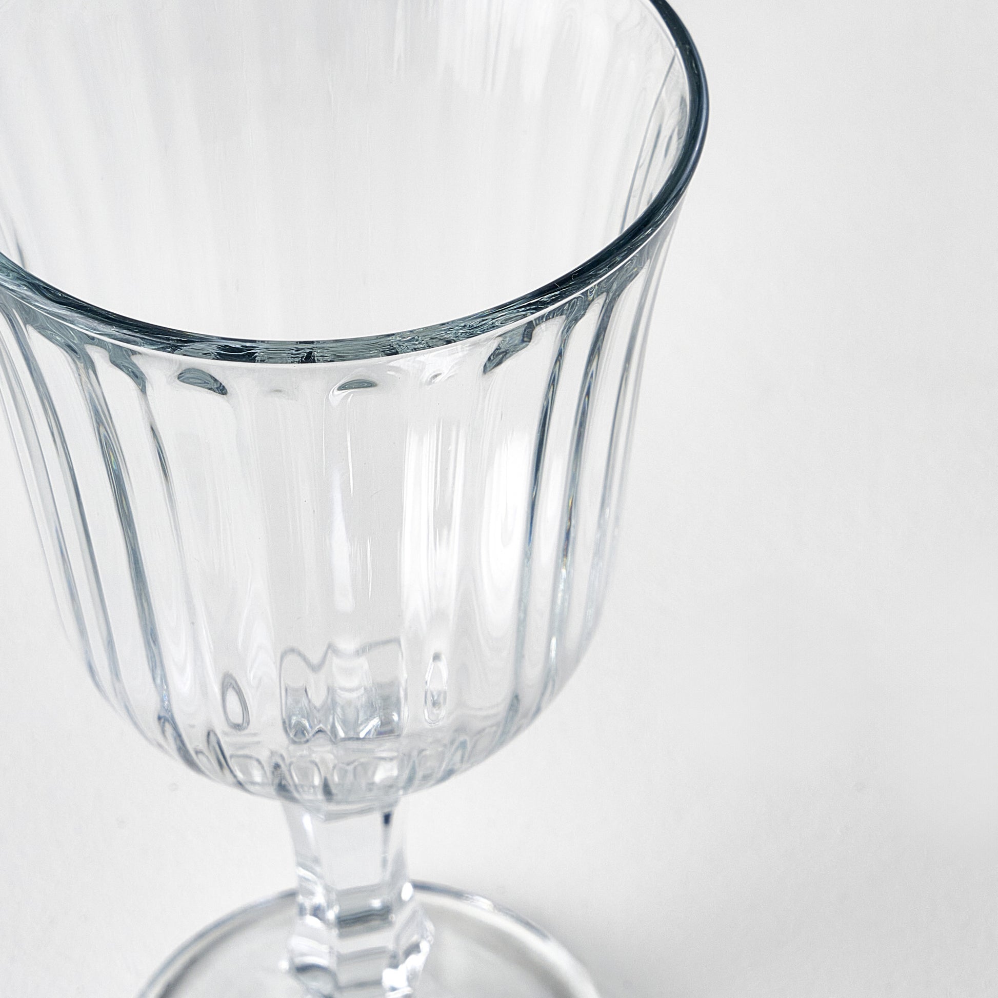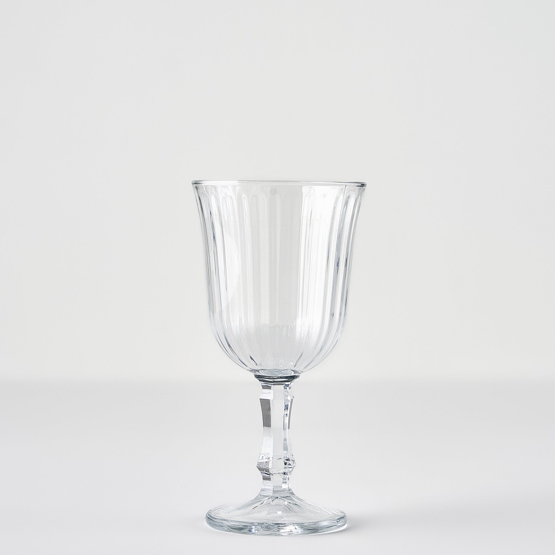 The Line Wine Glass features a natural-toned glass with an elegant built-in linear pattern, perfect for adding subtle texture to your table setting.