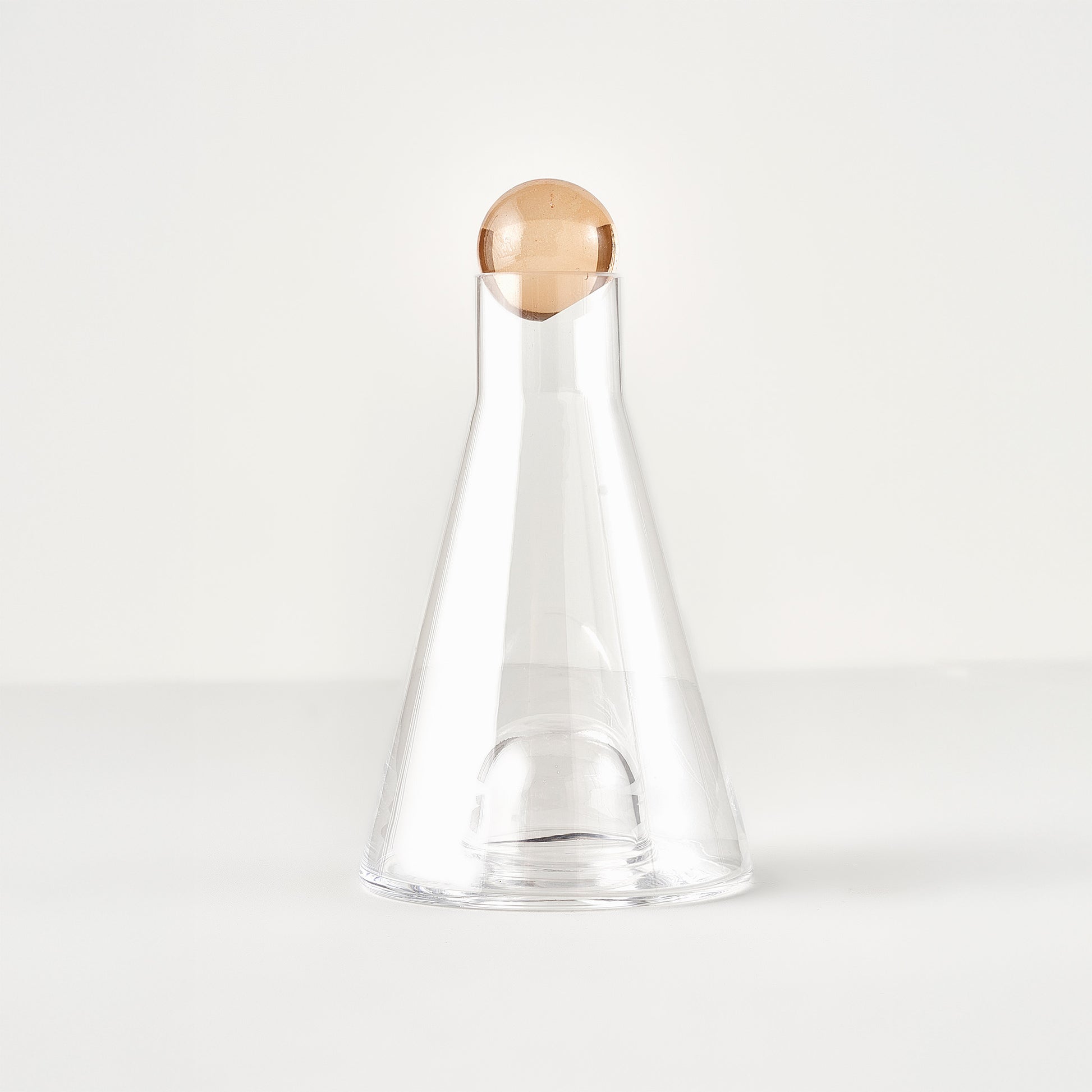 The Magic Carafe is handcrafted from glass and features a round lid that can be placed in the base compartment, allowing it to double as a decorative vase.