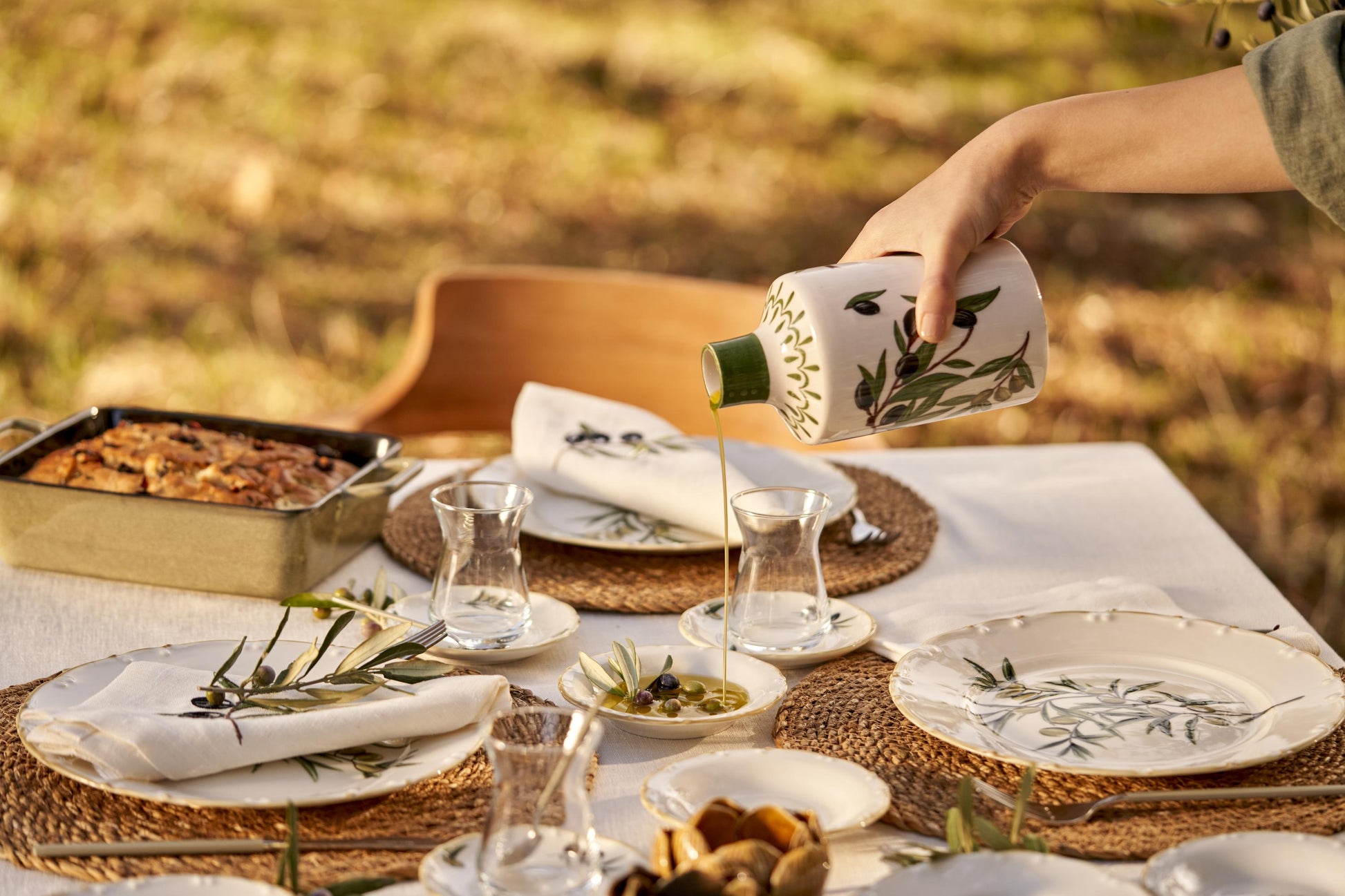 Whether set against a rustic outdoor meal or styled in a modern dining room, the Olive Collection adapts effortlessly. Its organic patterns and earthy tones add a grounded elegance that makes every space feel inviting and complete.