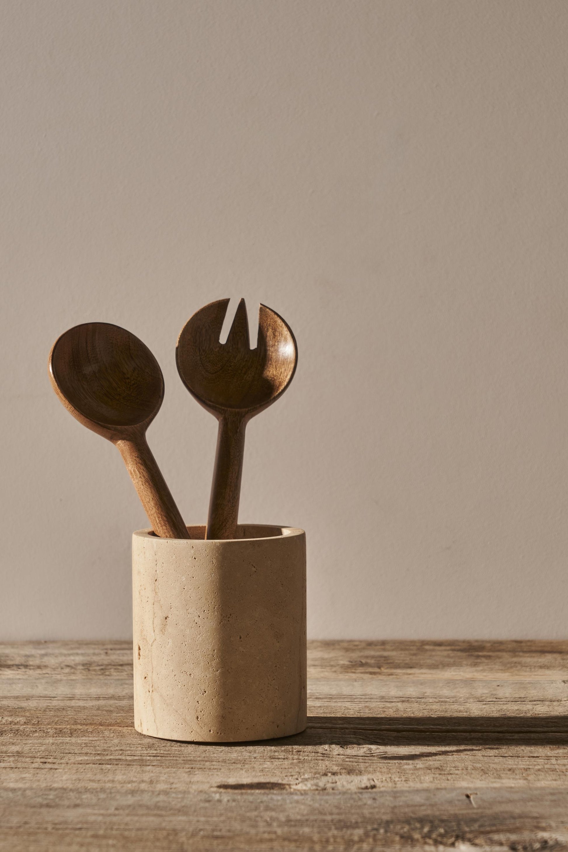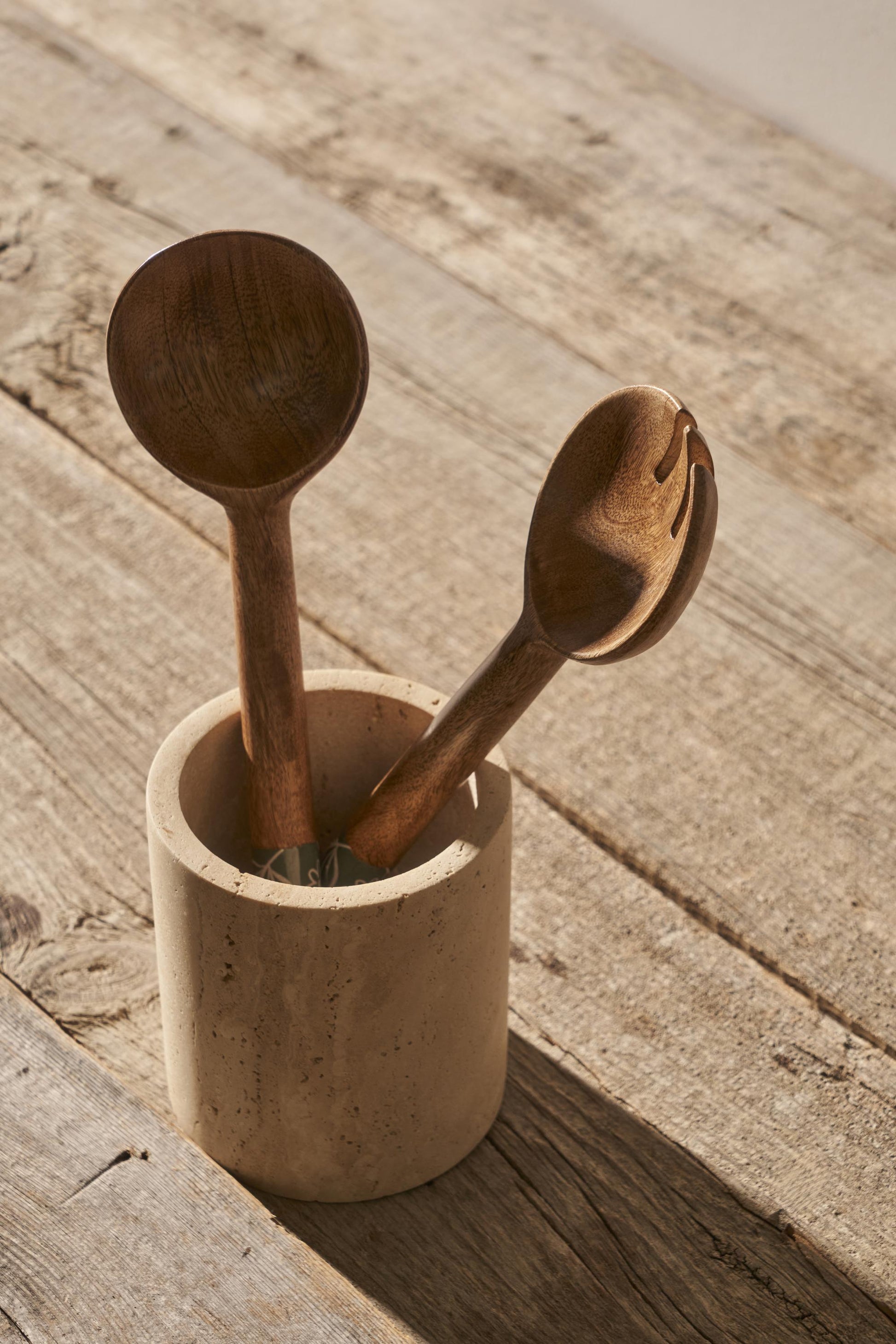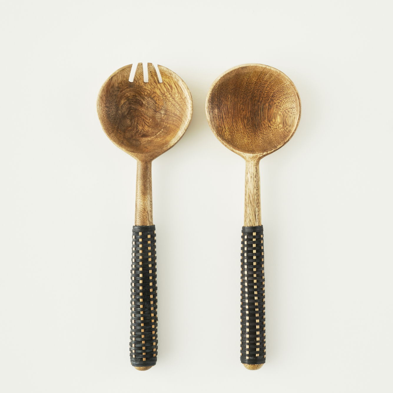 Durable mango wood salad serving set with a simple design that adds warmth and elegance to your table.