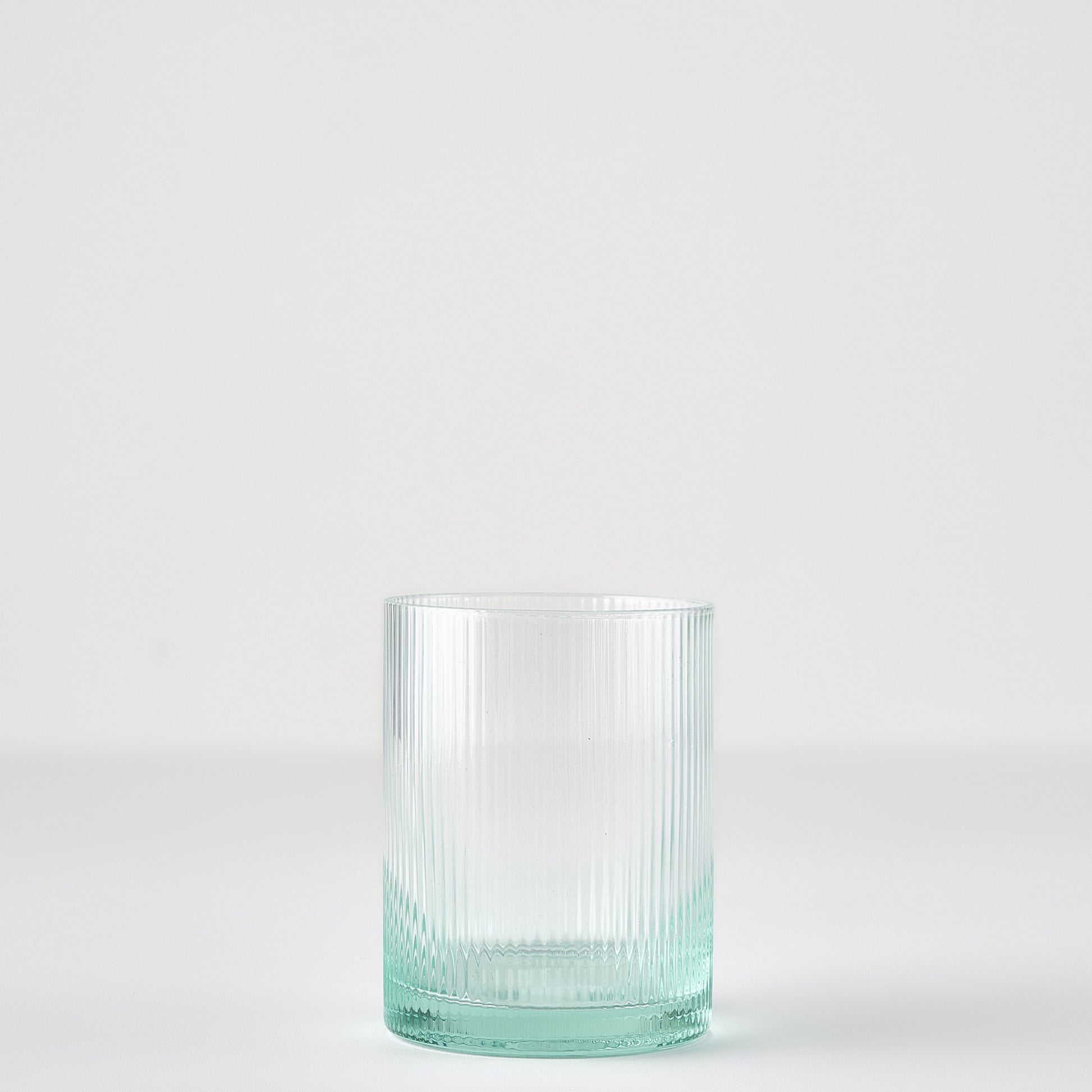 The Stripe Glass features a finely crafted vertical linear pattern in delicate glass, combining artistry with everyday elegance to elevate any refined table setting. Its slender silhouette embodies sophisticated simplicity, perfect for moments of subtle sophistication.