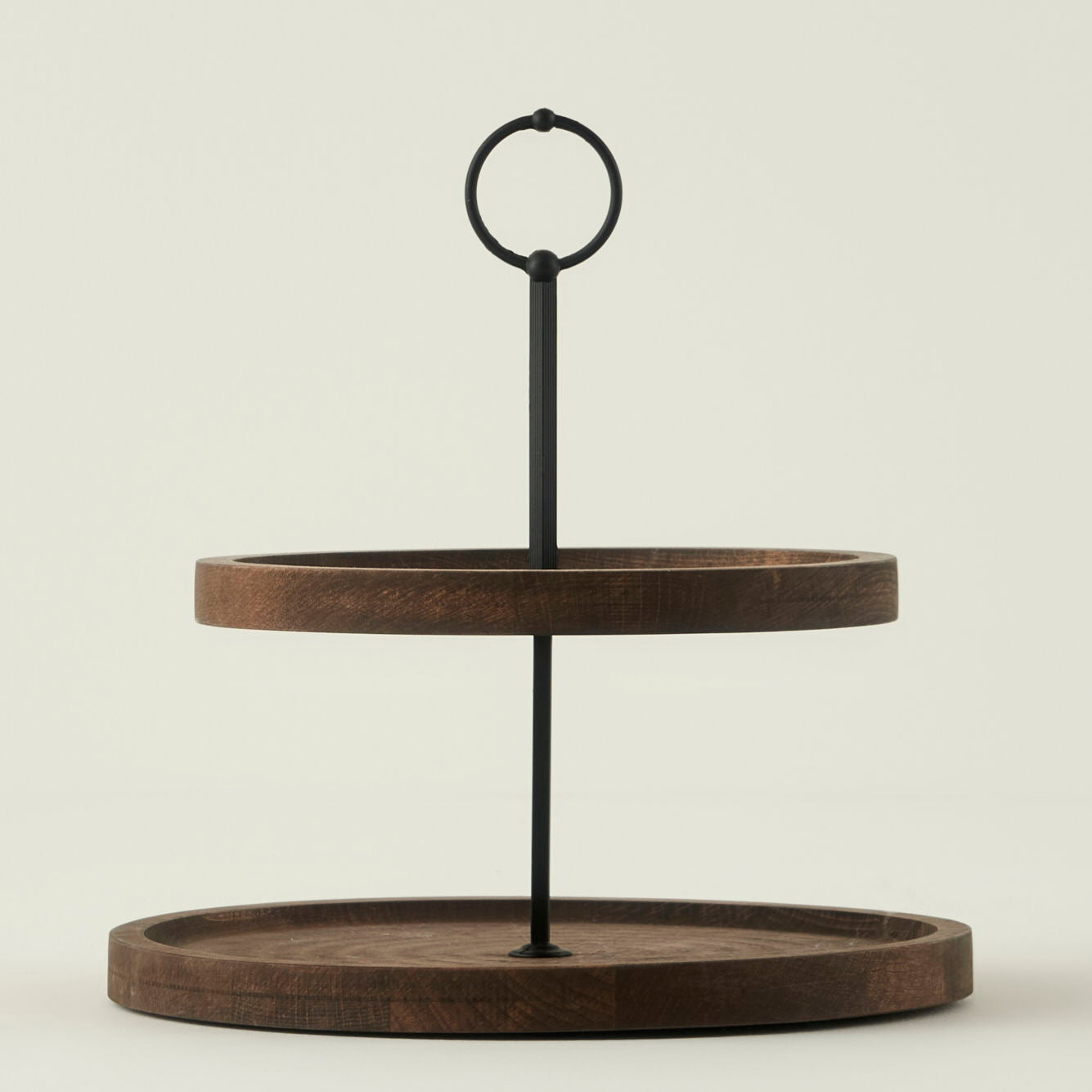 • Elegant two-tier wooden serving stand designed for cookies, pastries, and treats